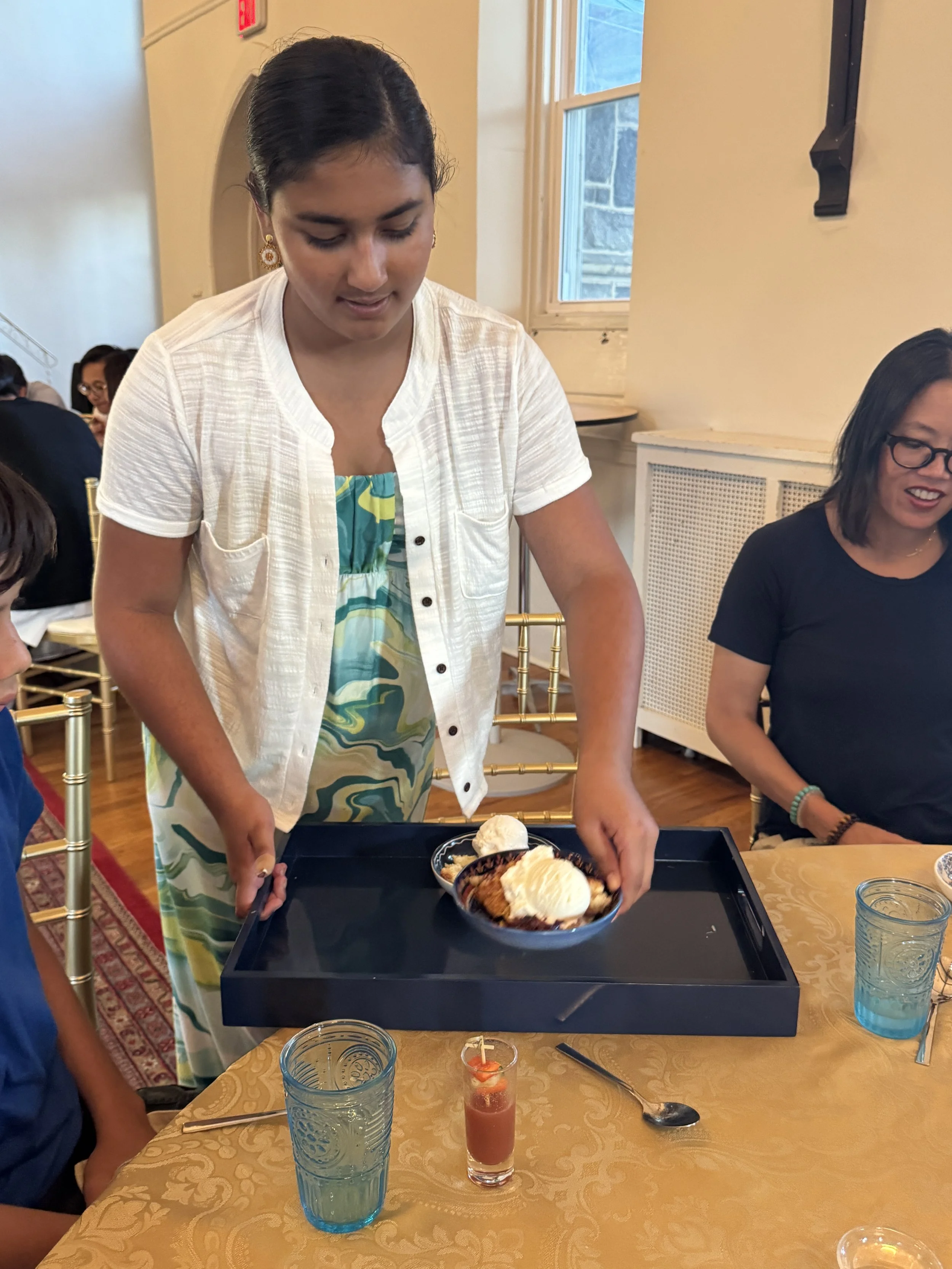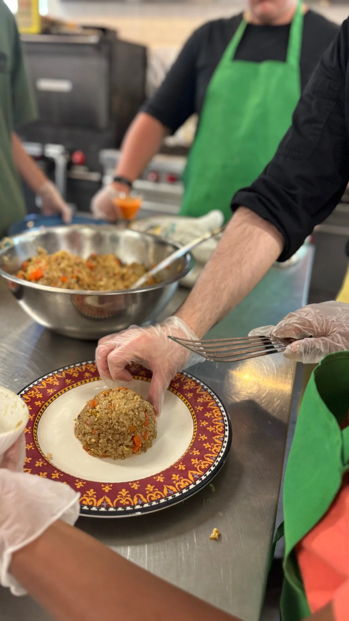 On the last day, the chefs came three hours early to prepare a large feast for their families. The students were divided into teams based on the recipes they wanted to prepare. For example, there was a team to prepare the Korean-style chicken, a team for the gazpacho, etc. However, they were presented with mystery ingredients to challenge their culinary skills. For example, the gazpacho team had to prepare a similar dish using watermelon instead of tomatoes. They then presented a beautiful buffet for their families.