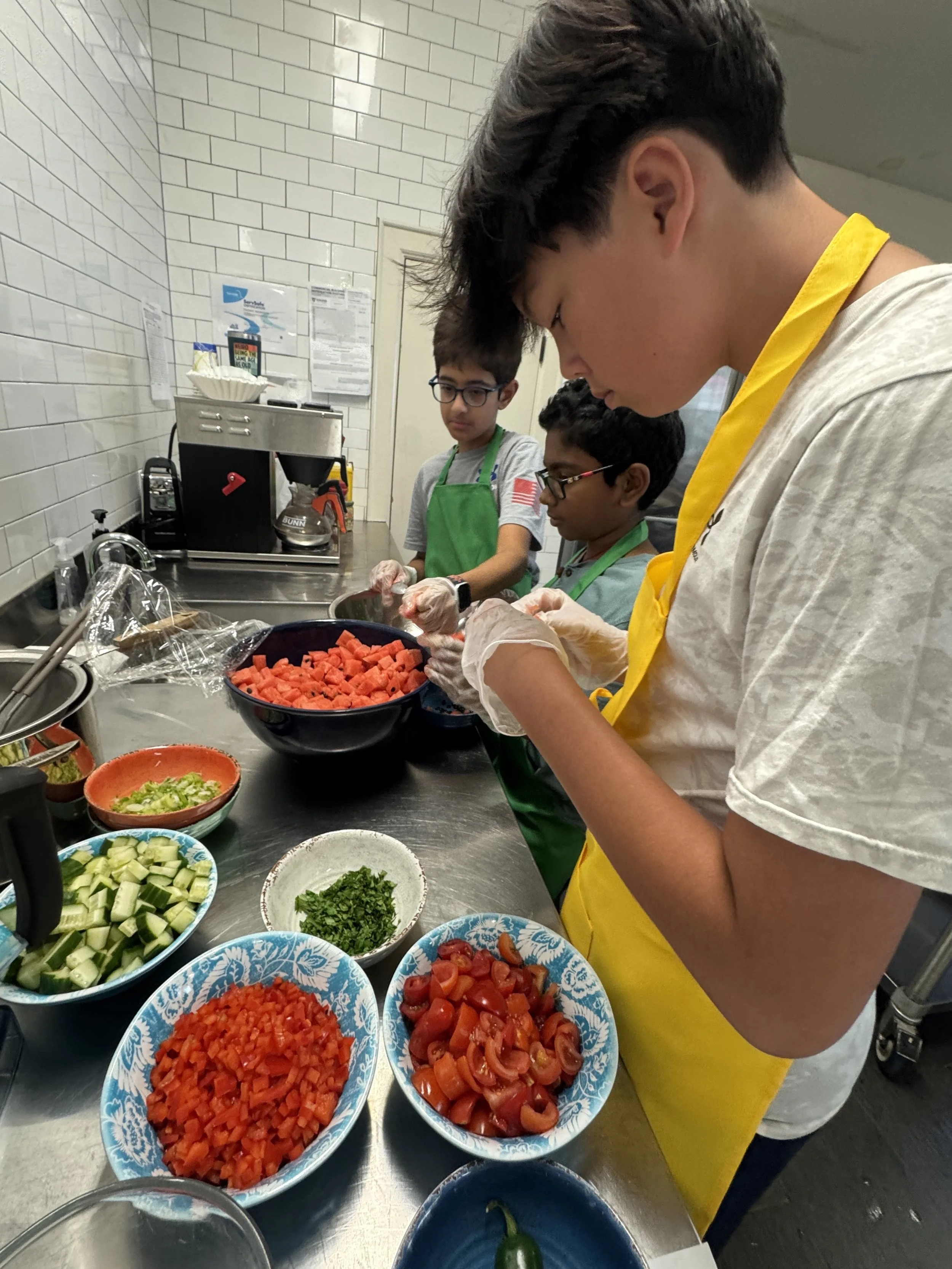 Our fifth week of the Passion for Spices™ Cooking Camp began with the students returning to the basics. They focused on mastering soups, broths, and improving their knife skills. For their first dish, the young chefs prepared a flavorful golden carrot ginger soup, putting their newly learned knife techniques to work as they chopped carrots and onions. They also created a refreshing gazpacho andaluz, blending tomato, garlic, bread, and other fresh ingredients into a smooth, vibrant soup. To round out the day, they cooked a classic fried rice, incorporating eggs, vegetables, and aromatic spices.