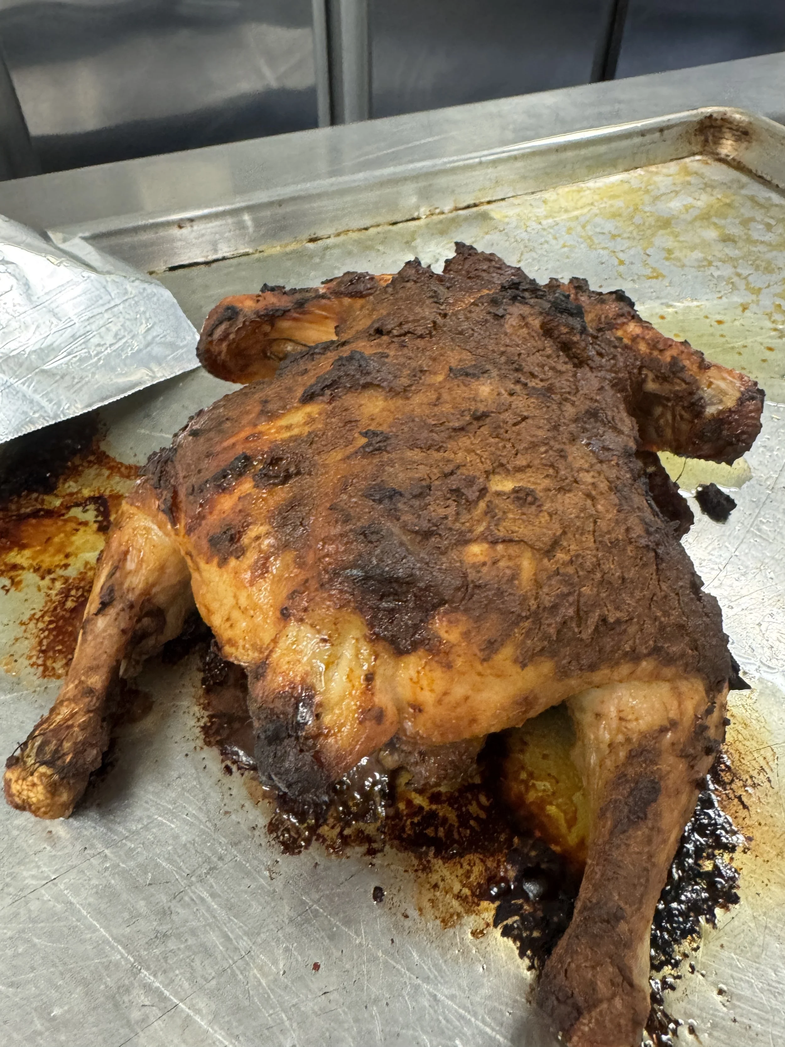 For day three, the students prepared some tasty side dishes. They started off with some tandoori-style roasted chicken. The students also made some grilled zucchini. They further utilized their knife skills to score the zucchini, which was then sauteed. It was then served with a flavorful cherry tomato sauce. The final side they made was mashed potatoes with garlic confit. The garlic was cooked slowly until golden brown and was served with the potatoes.
